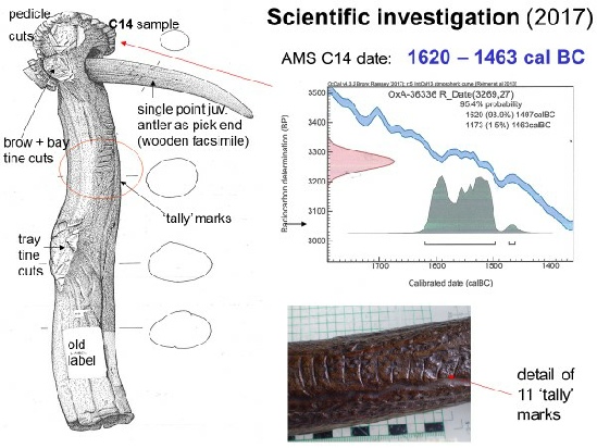 Examination of the antler pick has revealed the presence of “tally marks” cut into its