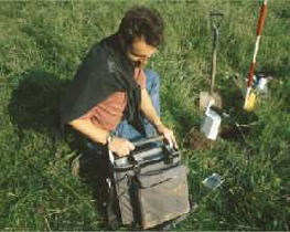 Sampling soils at Alderley Edge in 1997 (S. Timberlake)