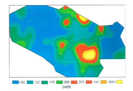 of high copper anomalies as revealed by spatial mapping and sampling at 50-